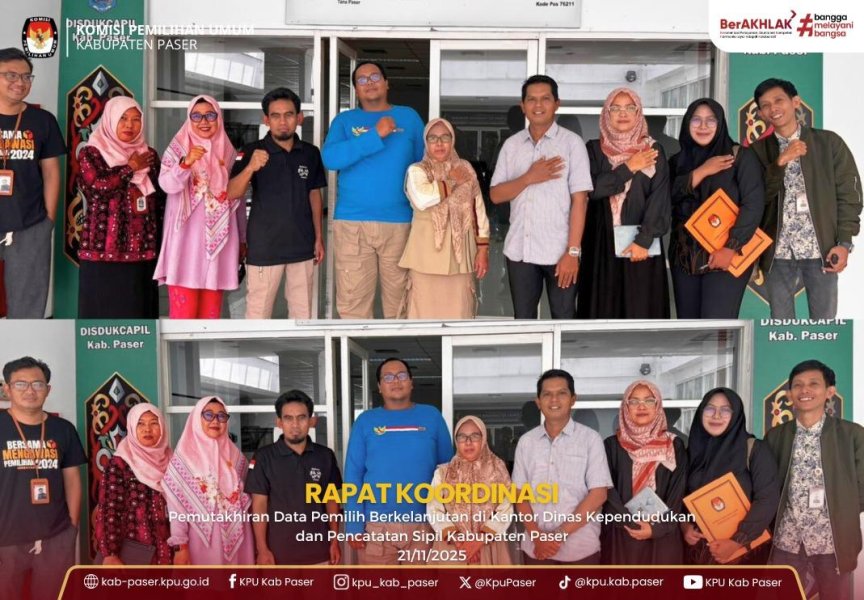Halo #temanpemilih, KPU Kabupaten Paser mengadakan kegiatan Rapat Koordinasi Pemutakhiran Data Pemilih Berkelanjutan (PDPB) di Ruang Rapat Dinas Kependudukan dan Pencatatan Sipil Kabupaten Paser, Jumat (21/11/2025). Kegiatan dihadiri oleh Ketua dan Anggota KPU paser beserta Operator, Perwakilan Disdukcapil Paser, dan Anggota Bawaslu Paser beserta staf. Kegiatan dibuka oleh Ahyar Rosidi serta dilanjutkan dengan penyampaian perkembangan Pemutakhiran Data Pemilih Berkelanjutan Triwulan IV oleh Dyah Elly Kusrini selaku Kadiv Perencanaan Data dan Informasi. Dari Pembahasan tersebut berbagai temuan dan kendala lapangan dibahas, mulai dari pemilih belum melakukan perekaman E-KTP, layanan perekaman bagi lansia, hingga percepatan validasi data kependudukan di beberapa kecamatan. Kegiatan ini menjadi acuan bagi KPU Paser untuk menetapkan langkah selanjutnya dalam pemutakhiran Data Pemilih Berkelanjutan. #KPU_Melayani ....