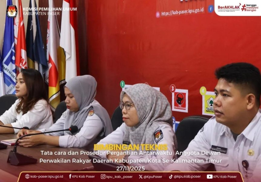 Halo #TemanPemilih, KPU Kabupaten Paser mengikuti Bimbingan Teknis Tata Cara danProsedur Penggantian Antarwaktu Anggota DPRD Kabupaten/Kota Se-Kalimantan Timur, secara Daring melalui Zoom Meeting di Ruang Rapat KPU Kabupaten Paser, Kamis (27/11/2025). Ketua KPU Provinsi Kalimantan Timur Fahmi Idris hadir membuka kegiatan ini. Hadir pula Anggota KPU Provinsi Kalimantan Timur Abdul Qayyim Rasyid, Suardi, Kabag TPP dan Hukum Fandi Akhmad, Kasubbag TPP Yulianita Adityarini. Kegiatan Bimbingan Teknis Penggantian Antarwaktu bertujuan untuk membahas dan menyamakan persepsi bersama PKPU 3 Tahun 2025 Tentang Penggantian Antarwaktu Anggota DPR, DPRD Provinsi, dan DPRD Kabupaten/Kota dan mekanisme penggunaan aplikasi Sistem Informasi Manajemen Penggantian Antarwaktu (SIMPAW) sebagai alat bantu dalam proses Penggantian Antarwaktu. #KPUMelayani ....