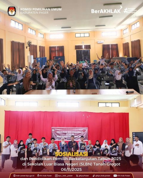 Halo #TemanPemilih, KPU Kabupaten Paser melaksanakan sosialisasi pendidikan pemilih berkelanjutan di Sekolah Luar Biasa Negeri (SLBN) Tanah Grogot, Kamis (06/11/2025).