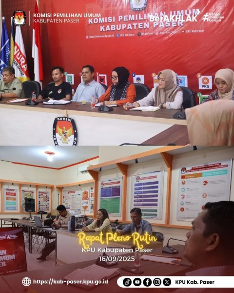 Halo #temanpemilih, KPU Kabupaten Paser melaksanakan Rapat Pleno Rutin di Ruang Rapat KPU Kabupaten Paser, Selasa (16/09/2025).