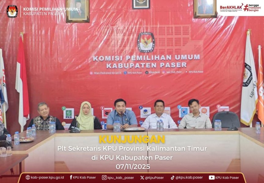 Halo #Teman Pemilih, KPU Kabupaten Paser menerima kunjungan Plt Sekretaris KPU Provinsi Kaltim, M Samsul Kadir di Ruang Rapat KPU Kabupaten Paser, Kamis (06/11/2025).