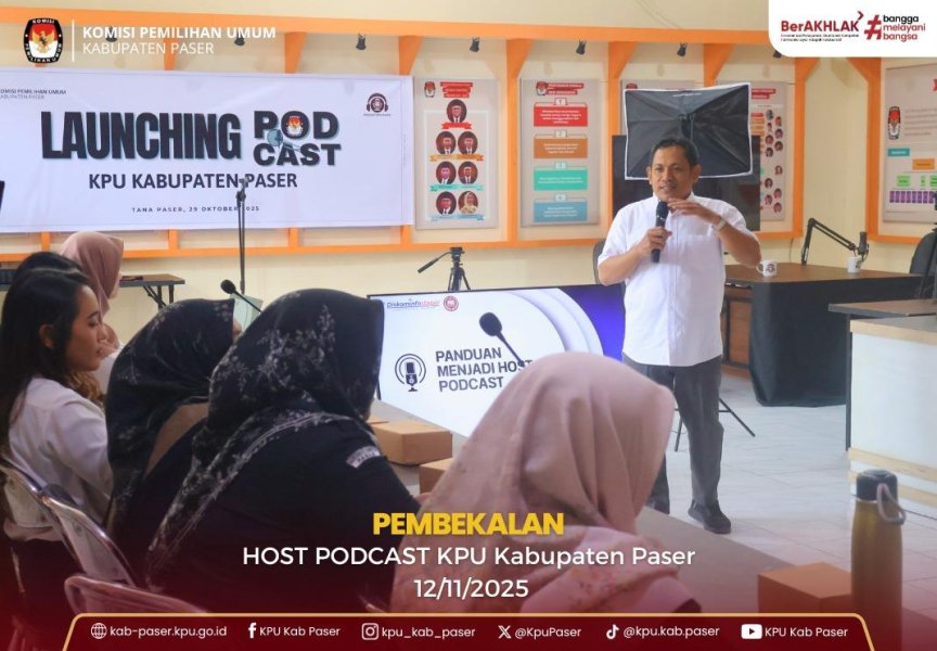 Halo #TemanPemilih, KPU Kabupaten Paser melaksanakan Pembekalan Host Podcast, Rabu (12/11/2025).