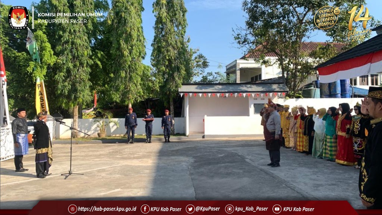 PASER (17/8/23) Segenap Komisioner dan seluruh Pegawai Sekretariat KPU Kabupaten Paser melaksanakan upacara pengibaran bendera merah putih memperingati Hari Ulang Tahun ke-78 Kemerdekaan Republik Indonesia tahun 2023 di halaman kantor KPU Kabupaten Paser dengan berpakaian Adat. Kegiatan tersebut dilaksanakan tepat pukul 07.00 waktu setempat sesuai instruksi dan arahan dari KPU RI dalam suratnya nomor 2983/PK.02-SD/04/2023 tanggal 9 Agustus 2023 Perihal Upacara Peringatan Hari Ulang Tahun Ke-78 Kemerdekaan Republik Indonesia Tahun 2023.