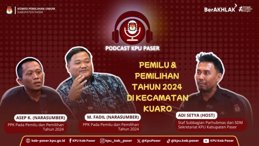 Podcast KPU Paser Pemilu dan Pemilihan Tahun 2024 di Kecamatan Kuaro Sabtu, 29 November 0025 11:00 6 Hai #temanpemilih, Yuk saksikan Podcast KPU Kabupaten Paser di kanal Youtube KPU Kab Paser atau di link berikut: Klik disini #KPUMelayani Baca Selengkapnya