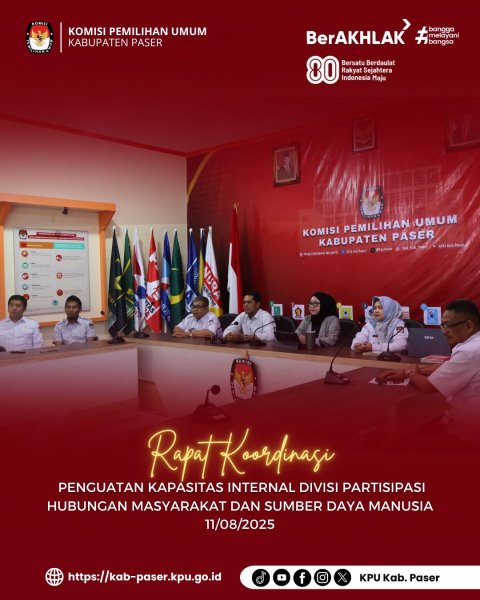 Hai #temanpemilih, KPU Kabupaten Paser mengikuti Rapat Koordinasi Penguatan Kapasitas Internal Divisi Partisipasi Hubungan
