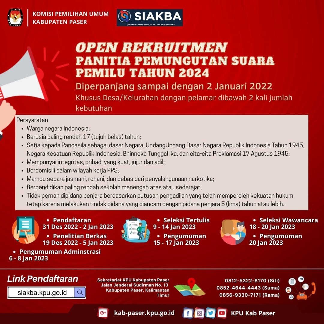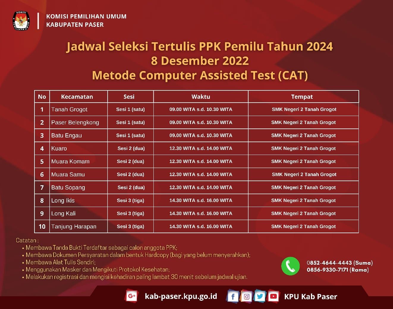 Tempat Pelaksanaan : Kantor KPU Kabupaten Paser