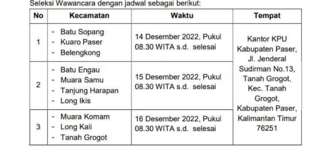 Berikut ini kami Sampaikan Jadwal Seleksi Wawancara PPK Pemilu 2024