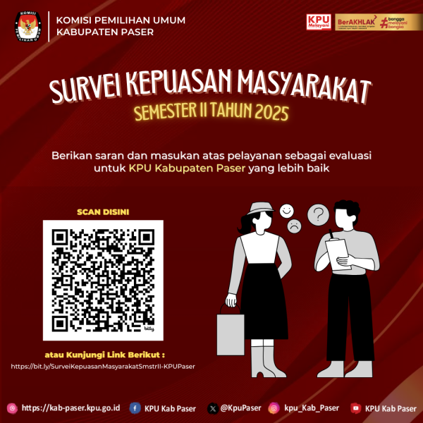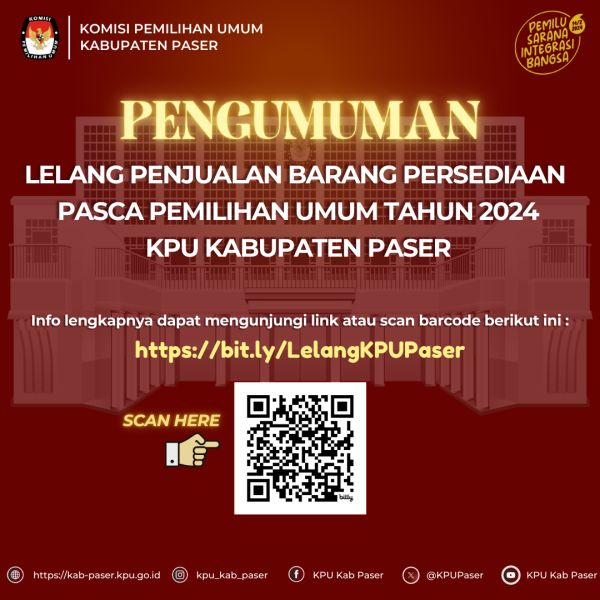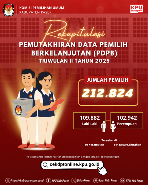#TemanPemilih dapat perbaharui data diri Anda/keluarga yang meninggal dunia di Kantor KPU Kabupaten Paser di Jl. Jenderal Sudirman No.13, Tanah Grogot, Kabupaten Paser, dengan melampirkan/membawa data bukti pendukung berupa fotocopy KTP/Kartu Keluarga/Surat Keterangan.